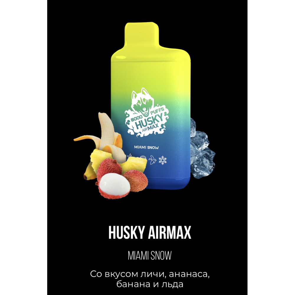 Электронная сигарета Хаски Аир Макс Личи Ананас Банан со Льдом (Husky Airmax Miami Snow) на 8000 затяжек