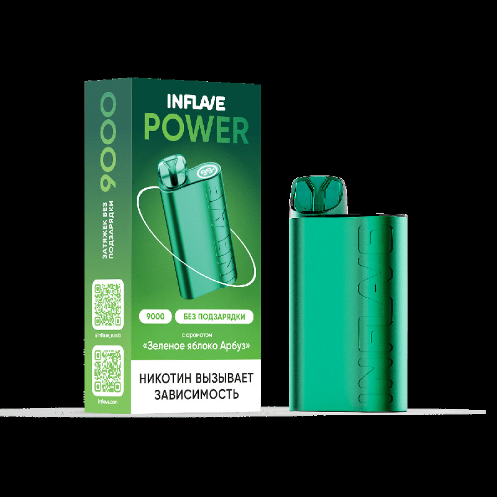 Электронная сигарета INFLAVE POWER 9000 затяжек Зеленое Яблоко Арбуз - купить в Апатитах